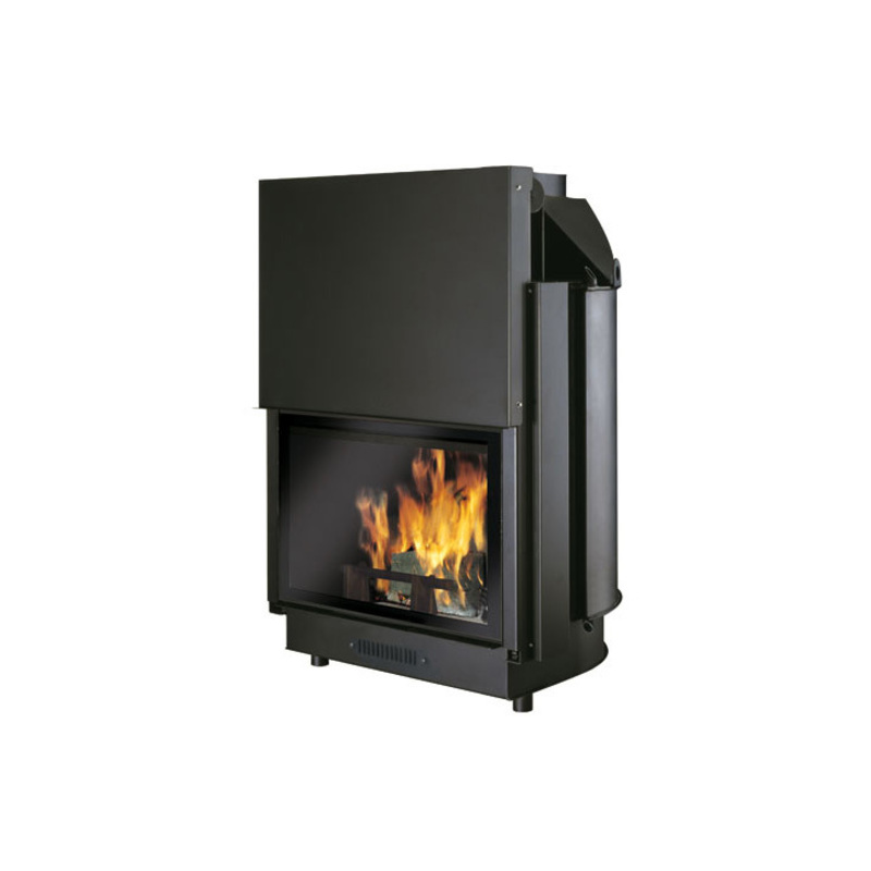 Reinforced steel fireplace that supplies the heating network with bodies and the circuit for hot water. It has a sliding flat door. Can be mounted on a straight wall or in a corner. Also available in the type with closed expansion tank with integrated coil and safety valve. Thermal power consumption 33.5 kW.